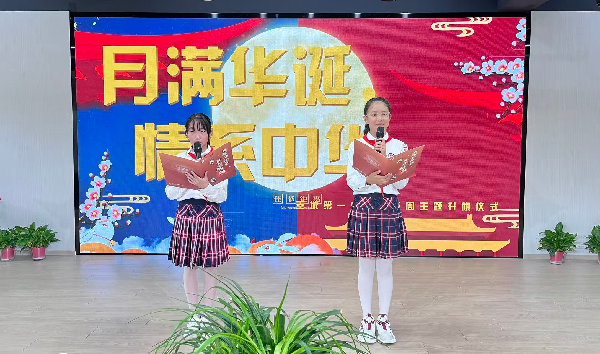 清晨的校园,在全体师生庄严的注视下,以“月满华诞,情系中华”为主题的升旗仪式正式开始。伴随着激昂的国歌,五星红旗冉冉升起,迎风飘扬。