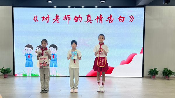 三位学生代表走上台,分享了他们与老师之间温暖而难忘的故事。从胆怯到勇敢,从迷茫到坚定,孩子们的成长点滴中,处处可见老师们爱的痕迹。
