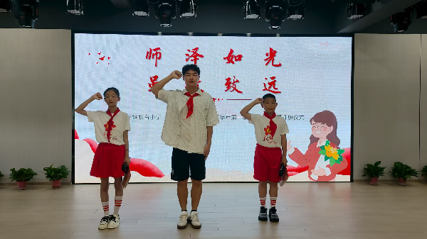 “三尺讲台育桃李,一支粉笔写春秋”——孩子们用真挚的语言赞美老师无私的奉献。随后,五(4)中队献上手势舞表演《送你一朵小红花》,用优美的动作和纯真的歌声,表达对老师最纯粹的爱与感谢。