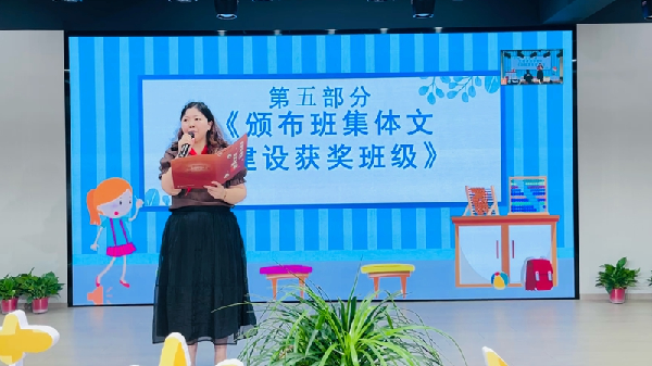 德育主任王玲老师颁布了班集体文化建设的获奖班级名单,鼓励大家继续营造良好的文化氛围。