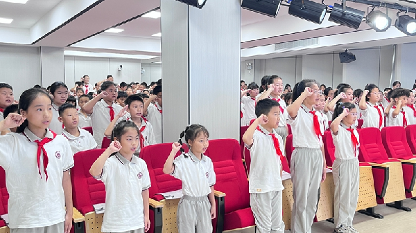 在主持人的带领下,全体队员举起右手庄严宣誓:“我们是奉一小萤星,我们要说好普通话、写好规范字、争做文明人!点亮自己,温暖他人,照亮世界!”