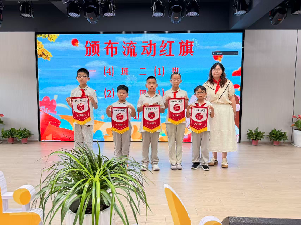 本次活动中还进行了多项表彰。在上周的乐动校园校园广播操比赛中,一(2)班等5个班级获团体第一名,一(4)班等5个班级获团体第二名,一(1)班等10个班级获红色活力班级,党总支书记施建英、德育主任王玲和副校长陈芬分别为获奖班级颁奖。随后,德育主任王玲老师宣布流动红旗获得班级名单,并激励各中队营造优良校园风尚。