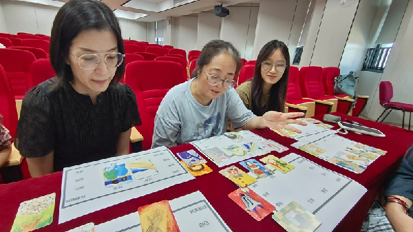 心理社团在团长朱斯维组织下开展了“心晴小筑 拾光知愈”,通过“塔罗启心”活动,成员随机抽取牌,围绕牌面图案、色彩和象征意义,结合自身经历进行解读,将抽象的符号与生活故事紧密相连,在交流中明晰自我认知。后续,还通过放松训练、放松大脑,提升快乐情绪,以帮助实现思想、身体和精神的平衡。